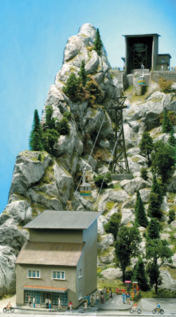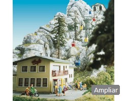 Teleférico - Inclui sistema completo, com duas cabinas iluminadas, um apoio central e mecanismos das extremidades.
