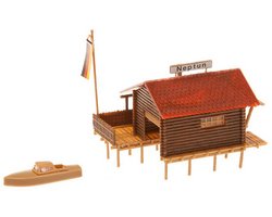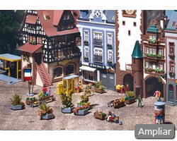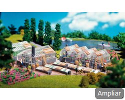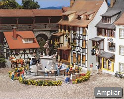 Conteúdo do kit: 85 peças em 8 cores, peças de janelas, 1 bomba eléctrica de água e 1 manual de montagem. Montagem: usar cola plástica FALLER.