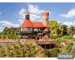 Descrição: Modelo bonito e luxuosamente concebido, ideal para colocar numa colina. O terraço e a base da torre são em madeira, com envidraçados correspondentes. Inclui pequenas peças e acessórios para o cenário.