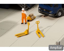 Descrição: Conjunto com dois porta-paletes, ideal para armazéns, cais de carga e cenas de logística.