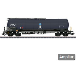 Modelo: Os vagões-cisterna possuem dois eixos em construção detalhada com diferentes números, localizações e proprietários, freios manuais e plataformas de freio sem cabine de freio.