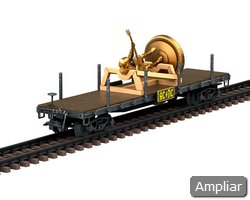 Vagão-plataforma de quatro eixos, tipo americano. Usado para transportar uma estátua ACDC