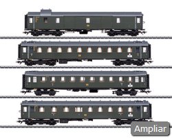 Modelo: As carruagens possuem uma construção detalhada e estão à escala completa. O raio mínimo para operação é de 360 mm / 14-3/16. Os bogies são do tipo Görlitz II pesados. As extremidades das carruagens possuem escadas aplicadas separadamente e alças de apoio aplicadas separadamente. As carruagens de passageiros possuem interiores detalhados em múltiplas cores. Todas as carruagens têm iluminação interior LED instalada de fábrica, com LEDs brancos quentes e capacitores de buffer. Uma das carruagens expresso 1ª/2ª classe possui um patim para captação de corrente, que fornece energia a toda a composição utilizando os engates próximos condutores de corrente instalados de fábrica. Para este propósito, é prescrita uma ordem de carruagens permanentemente definida. As cabeças de engate próximo normais e novas para alturas de buffer mais baixas são utilizadas em ambas as extremidades da composição. As alturas dos buffers em todas as carruagens estão em conformidade com a norma NEM. Comprimento total sobre os buffers: aproximadamente 76,2 cm / 30.