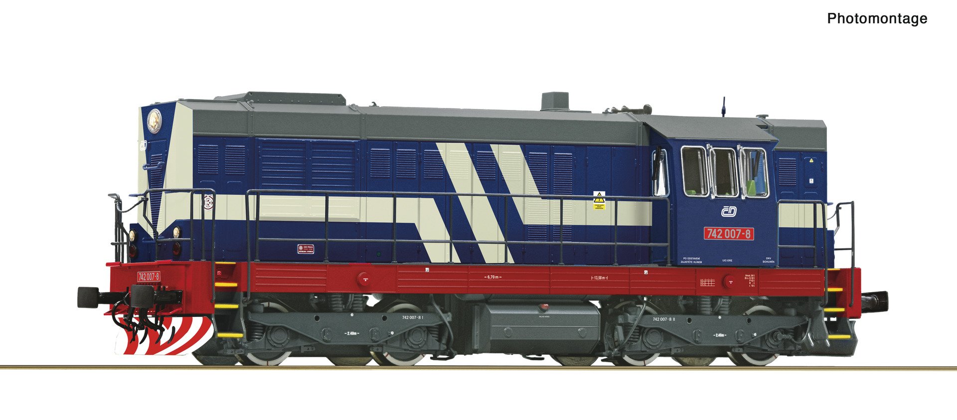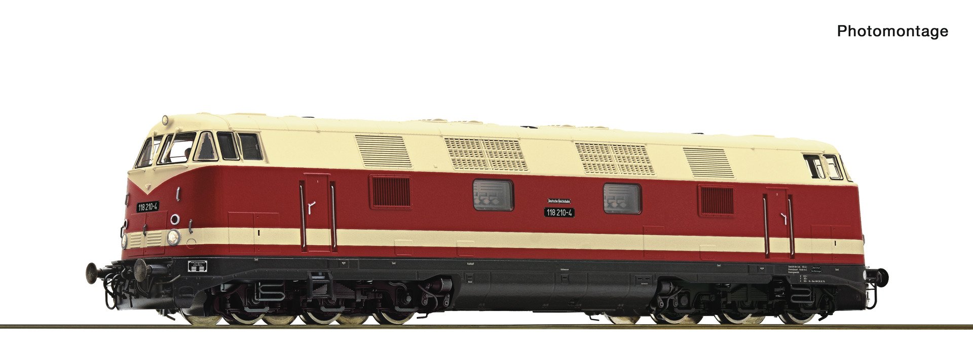 - Versão em pintura DR fictícia - Limpadores de pára-brisa montados separadamente - Com peças de encaixe incluídas para mostrar o avental frontal fechado - Com decodificador integrado no vagão e decodificador de funções no carrinho lateral, bem como funções comutáveis ??de luz e som