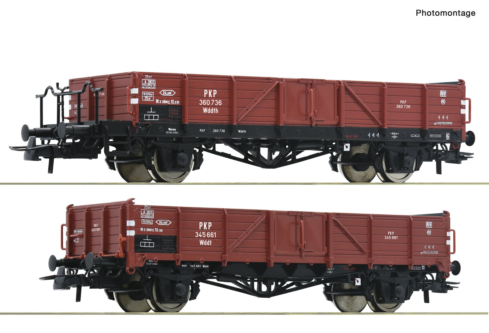 Conjunto de vagões com dois vagões abertos, tipo Eaos, dos Caminhos de Ferro Polácos.
