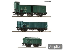 Conjunto de vagões com três vagões abertos da Ferrovia Estatal Italiana.