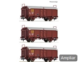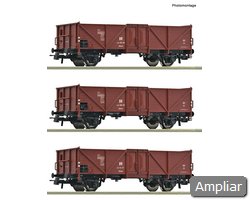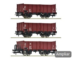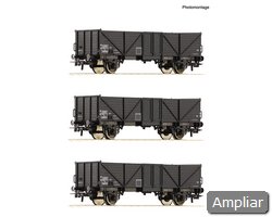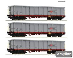Conjunto de vagões composto por três vagões abertos, tipo Eanos, dos Caminhos de Ferro Austríacos.