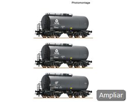 Conjunto de vagões com três vagões silo, tipo Raj, da Ferrovia Estatal da Checoslováquia.