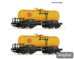 Conjunto de vagões com dois vagões-tanque, tipo Deutz, utilizados pelas Ferrovias Estatais Suecas.