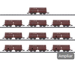 Protótipo: 10 vagões basculantes de quatro eixos da German State Railroad (DRB) tipo Erz IId OOt Saarbrücken / OOtz 43. Versão com caixa superior de altura média e plataforma do guarda-freios. Utilizados para o transporte de minério de ferro. Rodados padrão de chapa de metal prensada.