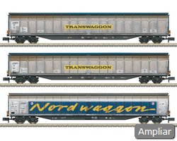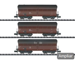 Modelo: Os vagões basculantes apresentam uma construção detalhada com diferentes números de vagão. Todos os vagões possuem plataformas do guarda-freios e rodas de ajuste nas extremidades. Os vagões estão equipados com inserções de carga e são carregados com minério de ferro em escala real. Todos os vagões estão embalados individualmente. Comprimento sobre os buffers por vagão: 64 mm / 2-1/2.