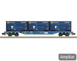 Modelo: O chassi do vagão é construído em metal fundido, os bogies são do tipo Y 25 e há um mecanismo de engate próximo. O vagão está carregado com um contêiner de 40 pés removível. Comprimento sobre os buffers: 123 mm / 4-7/8.