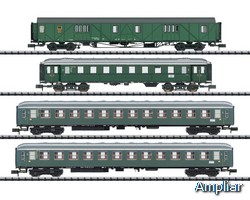 Você pode formar um trem prototípico com a locomotiva classe 218, item número 16826, e os vagões 18551 a 18555.