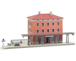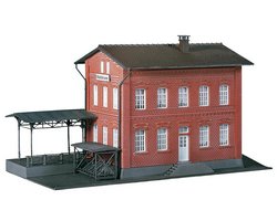 Descrição: Estação com zona de mercadorias anexa, sala de espera coberta e vários acessórios que animam de forma realista o cenário ferroviário.