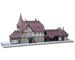 Descrição: A estação “Schwarzburg”, construída por volta de 1900, impressiona pela arquitetura e pela riqueza de pormenores. Ideal como peça principal num cenário ferroviário clássico.