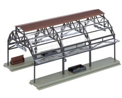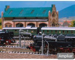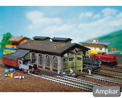 Descrição: Cocheira da era do vapor, com 2 vias e portas funcionais (mecanismo de mola). Para locomotivas até 135 mm de comprimento (sobre tampões). É possível colocar várias lado a lado.