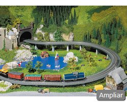Descrição: Ponte de 360 mm de comprimento, completa com 2 leitos de via retos e 6 pilares de betão (7 mm cada). A ponte ref. 120534 é compatível com esta ponte como ponte de vigas. Pode ser utilizada com todos os sistemas de via, exceto via Märklin C.