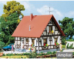 Conteúdo do kit: 119 peças em 4 cores, peças de janelas, 1 máscara em papel e 1 manual de montagem. Montagem: usar cola plástica FALLER EXPERT.
