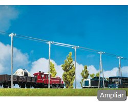 Descrição: Conjunto com 20 postes. Inclui “cabos” para encenação (sem função eléctrica). Ideal para completar cenas rurais, linhas secundárias e áreas industriais.
