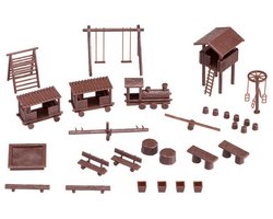 Medidas (C x L x A): 42 x 32 x 28 mm; 39 x 18 x 13 mm; 120 x 18 x 13 mm; 106 x 46 x 19/53 mm Época: II Escala: H0 (1:87) Nível de dificuldade: Fácil