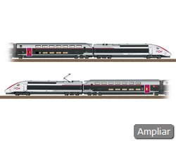 Protótipo: TGV INOUI (Euroduplex) – carruagens intermédias bi-nível R2 e R3, 1.ª classe, serviço Paris–Munique, unidade 4713 (c.2025). Modelo: Conjunto de extensão com 2 carruagens permanentemente acopladas. Iluminação interior LED branco-quente de fábrica, com alimentação através de ligação elétrica contínua em toda a composição. Bogies Jakobs com mecanismo de guia. Modelo à escala: raio mínimo 360 mm com folga lateral adequada. Comprimento do par: 43 cm.