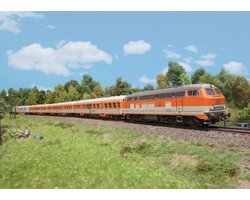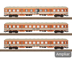 Protótipo: Duas Bnrzb 778.1 (2.ª classe) + uma ABnrzb 772.2 (1.ª/2.ª com compartimento de cafetaria), esquema laranja puro/cinzento-claro, rota Colónia–Gummersbach (a partir de 1986). Modelo: Detalhe do chassis específico por tipo. Bogies com travões de disco. Pegas aplicadas separadamente nas extremidades. Iluminação interior LED de fábrica em todas as carruagens, cada uma com condensador tampão. Engates de aproximação condutores de corrente, desacopláveis; a iluminação trabalha em conjunto com a carruagem de comando (ref. 23235). Letreiros de rota impressos. Inclui tubos de queda WC e estribos de manobra para montagem. Raio mínimo 360 mm. Embalagem individual por carruagem dentro de caixa-mestre. Comprimento entre tampões (por carruagem): 28,2 cm.