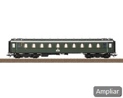 Protótipo: C4ü expresso (desenho 1928–30), 3.ª classe, D 74 Hamburg-Altona – Basel SBB (secção Frankfurt–Basel), c.1955. Modelo: Construção detalhada e comprimento à escala. Raio mínimo 360 mm. Iluminação interior LED branco-quente de fábrica + condensador tampão. Cabeças de engate curto (altura de tampões mais baixa). Inclui corredor curto de substituição para a extremidade do comboio. Placa de rota e número impressos. Inclui sanfona/folheto com ilustração e sequência prototípica. Comprimento entre tampões: 25 cm.