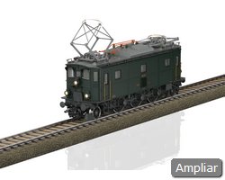 Protótipo: SBB/CFF/FFS Ae 3/5, com plataformas de transição nas extremidades e luz de comboio contrário acima do farol superior; verde-abeto com rodado cinzento; nº 10217; aspeto 2022. Modelo: Descodificador digital com extensas funções de luz e som. Motor de alto desempenho com volante de inércia. 1 eixo motorizado e aros de aderência. Iluminação frontal suíça: faróis triplos + 1 luz branca de presença, com comutação conforme o sentido; em circulação “isolada” pode ser comutada para 1 luz vermelha de fim. Luz de comboio contrário controlável separadamente em digital. Faróis nas extremidades 1 e 2 desligáveis separadamente; função “duplo A”. Iluminação de cabina e do púlpito, efeito de intermitência do relé e iluminação da casa das máquinas — controláveis separadamente em digital. LEDs branco-quente e vermelhos sem manutenção. Condensador tampão. Construção metálica muito detalhada com muitos pormenores aplicados separadamente. Interiores detalhados nas cabinas e casa das máquinas. Equipamento de teto detalhado (condutores, isoladores e passadiços) e pantógrafos de tesoura. Raio mínimo 360 mm. Inclui mangueiras de travão e imitações de engate de parafuso. Comprimento entre tampões: aprox. 12,8 cm.