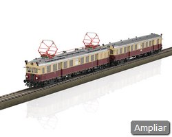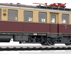 Protótipo: DRG automotora elétrica elT com reboque de comando elS, versão com portas frontais e plataformas de transição; lanternins de marcação no tejadilho; caixas de areia na disposição de origem; esquema bege/vinho; nº elT 1126 e elS 2126; destino no elS “Nach Ismaning – Nach München Ost Pbf”; depósito Munique; aspeto 1932. Modelo: A elT é unidade motora com descodificador digital e extensas funções de som. Motor de alto desempenho controlado. 4 eixos motorizados e aros de aderência. Faróis triplos e 2 luzes vermelhas nos topos exteriores de ambas as viaturas com comutação conforme o sentido, controláveis em digital. As duas viaturas são permanentemente acopladas por engate multipolar. Iluminação interior na elT e no elS funciona em analógico e é controlável em digital. LEDs branco-quente sem manutenção. Faróis no topo 1 da motora e topo 2 do reboque desligáveis separadamente em digital. Iluminação das cabinas exteriores controlável separadamente. Condensador tampão. Construção muito detalhada do rodado e da caixa; carroçaria e piso em metal; interior detalhado em várias peças e cores. Inclui sino de réplica, tubagens de travão e 2 cabeças de engate curto. Comprimento total entre tampões: aprox. 46,8 cm.