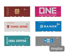 Conjunto de 6 contentores “box” standard de 20 pés, de diferentes operadores, Época VI (aspeto atual).