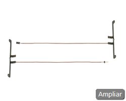 Descrição: Conjunto de fios de alimentação para os kits 73410 e 73411, composto por: (1) suporte de eixo com fio soldado e tomada, e (2) suporte de eixo com fio soldado e ficha, para ligações elétricas. Aplicação: Pode ser usado nas carruagens expresso de 4 eixos (construção standard 1928–1930) com fixação simétrica dos bogies. Exemplo de utilização: equipar as carruagens expresso Märklin 42500 a 42540 com iluminação interior LED, usando os conjuntos de eixos DC apropriados.