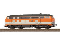 Protótipo: Série 218, esquema laranja puro/cinzento-claro, aspeto pós-1985. Modelo: Descodificador digital com extensas funções sonoras. Motor de alto desempenho controlado, central, com volante de inércia. 4 eixos motorizados e aros de aderência. Faróis triplos + 2 luzes de fim vermelhas com comutação conforme o sentido de marcha (analógico e controlo digital). Faróis nas extremidades 1/2 desligáveis em digital; função “duplo A”. Iluminação da cabina (comutando com o sentido de marcha) e do compartimento de máquinas controláveis digitalmente. LEDs branco-quente/vermelhos sem manutenção. Condensador tampão. Pegas metálicas aplicadas separadamente (laterais e frentes). Altura de tampões conforme NEM. Engates de aproximação com mecanismo de guia. Tubagens de travão e engates de parafuso incluídos para montagem. Comprimento entre tampões: 18,9 cm.