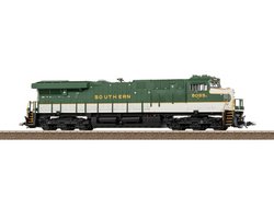 Protótipo: Norfolk Southern (NS) GE ES44AC, esquema cinzento/verde/preto “Southern Railway” (heritage), nº 8099, aspeto atual. Modelo: Descodificador digital com extensas funções de som e luz. Motor de alto desempenho com volante de inércia, montado ao centro. Em cada bogie, 2 eixos motorizados por veios cardan; aros de aderência. Faróis com 4 lâmpadas por extremidade, com comutação conforme o sentido; em digital podem ser desligados aos pares. Iluminação de cabina, mostradores do nº, faróis de longo alcance e função intermitente dos faróis controláveis digitalmente. LEDs branco-quente sem manutenção. Condensador tampão. Gerador de fumo instalado de fábrica com escape dinâmico, controlável em digital. Muitos detalhes aplicados separadamente. Para engates “knuckle”, a bolsa NEM pode ser fixada com as anilhas fornecidas. Inclui resguardo de via (frente) com pequeno recorte, mangueiras de travão e 2 anilhas para a bolsa NEM. Comprimento entre engates: aprox. 27 cm.