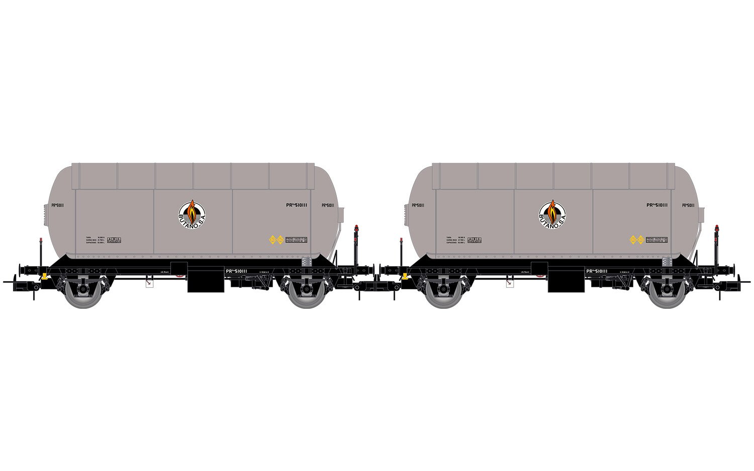 RENFE, 2-unit pack, PR gas tank wagons, "Butano S.A." silver