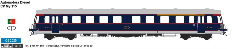 Composto por um carro de 3ª classe com cabine de freio, tipo C3, um carro de 3ª classe sem cabine de freio, tipo C3 e um carro de bagagem, tipo Dih.