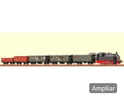 Modelo: A locomotiva tem um decodificador digital e funções de som extensivas. Também possui propulsão de alta eficiência controlada com um volante de inércia, montado na caldeira. 5 eixos acionados. Pneus de tração. A locomotiva e o tender são construídos principalmente em metal. A unidade de fumaça 7226 pode ser instalada na locomotiva. Faróis triplos alternam com a direção de viagem. Eles e a unidade de fumaça que pode ser instalada na locomotiva funcionarão em operação convencional e podem ser controlados digitalmente. A iluminação da cabine pode ser controlada separadamente em operação digital. LEDs de luz branca quente são usados para a iluminação. Existe uma ligação fechada com um mecanismo de guia entre a locomotiva e o tender. Existe um engate fechado com um mecanismo de guia e um bolso NEM na parte traseira do tender e na frente da locomotiva. O raio mínimo para operação é 360 mm / 14-3/16. Mangueiras de freio e protetores de haste do pistão estão incluídos. Comprimento sobre os buffers 26,5 cm / 10-7/16.